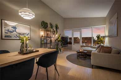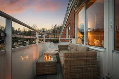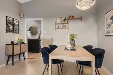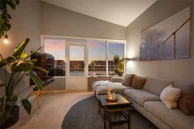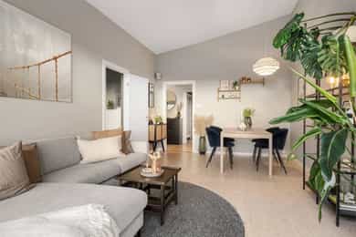 Gjennomgående 3-roms med imponerende takhøyde og solrik balkong | Kort vei til T-bane | 2 boder og garasje