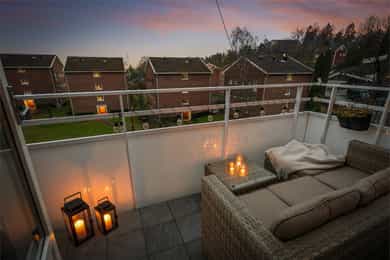 Svært gode solforhold. Midtsommers sol på balkongen fra kl 09.30-ca 20.15. 21.desember fra kl 11.00 til nesten kl 14.00.