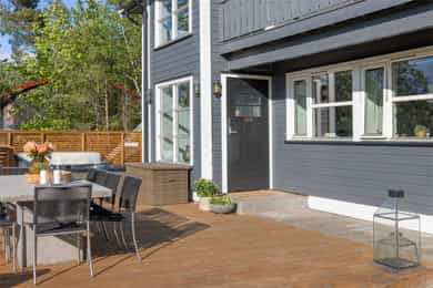 Velkommen til Sverrestien 24! Dette er en velholdt, stor og god enebolig beliggende i et meget hyggelig, attraktivt, og etablert villaområde på Blommenholm. Boligen ligger solrikt, usjenert og tilbaketrukket til med kort adkomst til det aller meste av servicetilbud. - Enebolig over to plan - Utleiedel med egen inngang (ikke godkjent) - Godt vedlikeholdt hus med god standard - 1. etasje ble renovert i 2021 - To nordvestvendte uteplasser: en på ca. 29 m² og en på ca. 92 m² med jacuzzi - Peis - Dobbel garasje - Flott eiendom med en pen opparbeidet tomt - et eldorado for småbarnsfamilier - Kort vei til barnehager/ skoler, fritidsaktiviteter og fantastiske rekrasjonsområder - Nær sjøen med flotte turområder og badeplasser - Gåavstand til båtforeninger, mulighet for båtplass