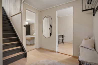 • 2025: fornyet trappetrinn, lagt trinnlydsplater og nytt gulv i flere rom