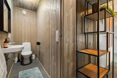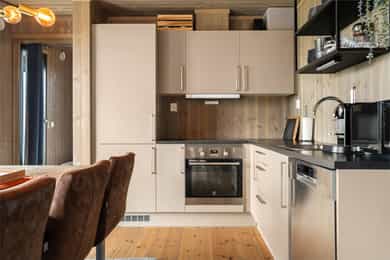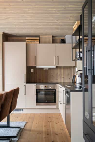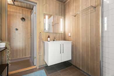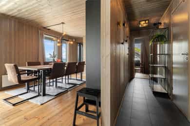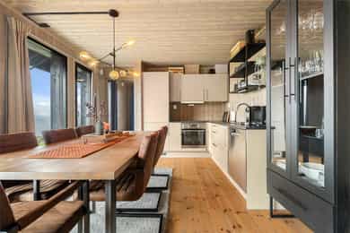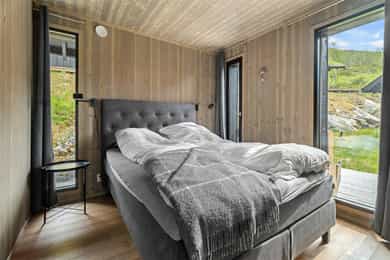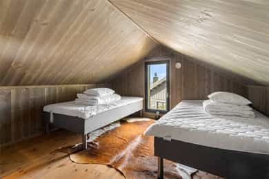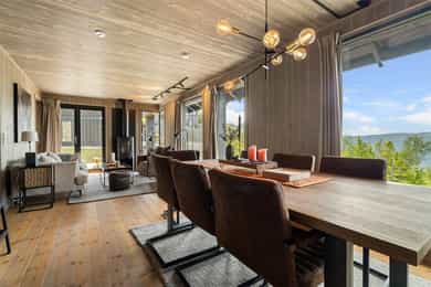 Entré/gang: Innbyende entré som gir et godt førsteinntrykk av boligen. Gangen har praktisk flislagt gulv, hvor det er enkelt å kle av seg yttertøy etter en lang dag i fjellet eller i skibakken. Gangen er godt utnyttet med oppheng og garderobeskap med gode oppbevaringsmuligheter. Teknisk rom: Teknisk rom med fliser på gulv og panel på vegger. Rommet har opplegg for vaskemaskin og det er sluk i gulv. Varmtvannsberederen er plassert i rommet. Det er god plass til oppbevaring av ski- og fritidsutstyr. Stue/spisestue: Romslig og åpen stue med store vindusflater som gir en fantastisk utsikt. Stuen har god planløsning med god plass til sofagruppe og spisestue. Stue, spisestue og kjøkken er i åpen løsning med hverandre, hvor det er god plass til venner og familie. Stua har en koselig peisovn som gir en lun og varm stemning. Uteplass: Fra stuen er det utgang til en stor terrasse på 68 kvm. Terrassen strekker seg rundt store deler av hytta, og har god plass til diverse sittegrupper. Her kan man nyte den fantastiske utsikten i rolige omgivelser. Kjøkken: Kjøkken med glatte fronter, laminerte benkeplater og nedfelt oppvaskkum i børstet rustfritt stål med 1-greps blandebatteri. Kjøkkenet er stilrent og funksjonelt, og er velutstyrt med integrert komfyr, platetopp, kombiskap og oppvaskmaskin. Vannstoppersystem med sensorer og komfyrvakt er montert. Avtrekk fra kjøkken er montert over kokesone. Bad: Hytta har bad med dusj og moderne fasiliteter. Badet har flislagte gulv med varmekabler, flislagt dusjsone, og panel på vegger og i himling. Videre er badet innredet med servant med underskap, speil med lys og gulvstående toalett. Rommet har mekanisk avtrekk og tilluft i dør. Toalettrom: Her får du også et praktisk toalettrom med fliser på gulv, og panel på vegger og i himling. Her er det servant og gulvstående toalett. Soverom: Det er totalt 5 soverom - 3 nede og 2 på loftet. Soverommene er romslige, og har plass til 2 sengeplasser per rom, enten i form av køyeseng, enkeltsenger eller dobbeltseng. Loftstue: Koselig loftstue - perfekt som en ekstra oppholdsplass. Stua passer ypperlig som TV-krok, kontor, lekestue eller leserom. Loftsetasjen har et gulvareal på 42 kvm som ikke er medregnet i arealene siden takhøyden er på 189 cm på det høyeste.