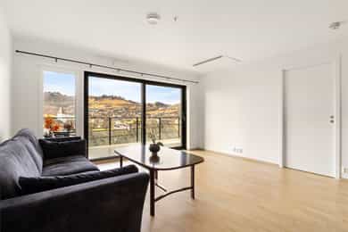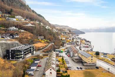 Lys og innbydende leilighet fra 2019 midt i Øystese sentrum | Flott utsikt og gode solforhold | Parkering og heisadkomst!