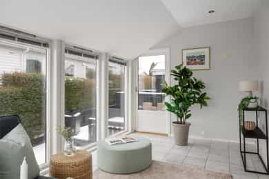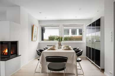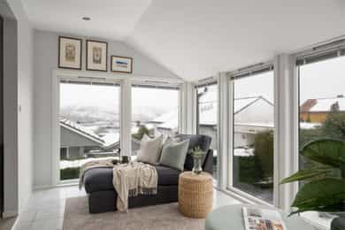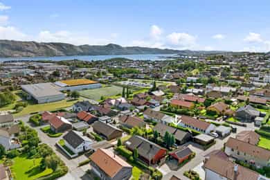 Småvollen 8 ligger i et attraktivt og veletablert boligområde med rolig og familievennlig atmosfære. Eiendommen har gode solforhold, lite gjennomgangstrafikk og nærhet til skole, barnehage, dagligvare og flotte turområder. - Lys og romslig stue med flott utsikt mot fjord og fjell - Moderne peis som skaper lun atmosfære - Hovedsoverom med utgang til terrasse - Tidløst kjøkken med integrerte hvitevarer - Helfliset bad med dobbel servant, badekar og separat dusj - 52 kvm solrik terrasse, perfekt for sosiale sammenkomster - Skjermet og privat uteområde med lite innsyn - Stort gårdsrom med dobbelgarasje og elbillader - Pent opparbeidet tomt