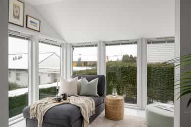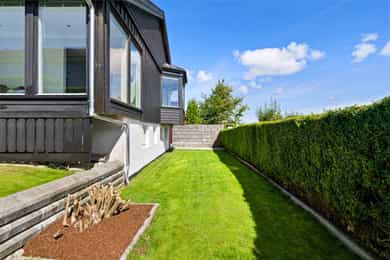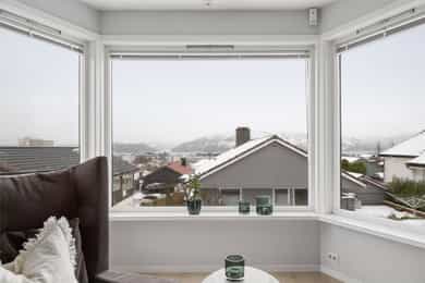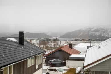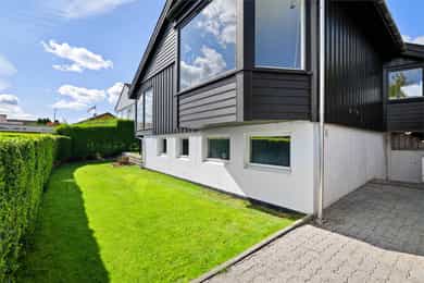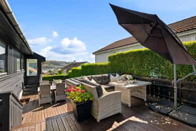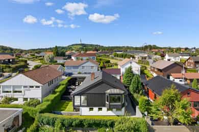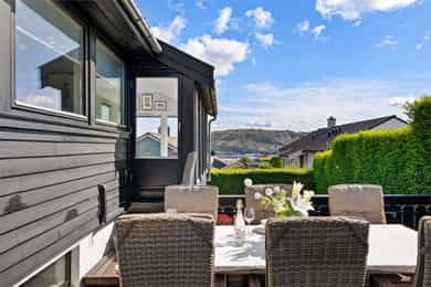 Enebolig med utsikt og dobbel garasje, stor og solrik terrasse, familievennlig beliggenhet og ettertraktet nabolag