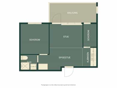 BRA-i: 33 kvm. 2 soverom, stue/kjøkken og bad.
