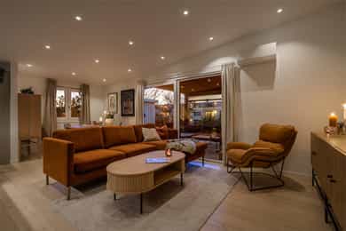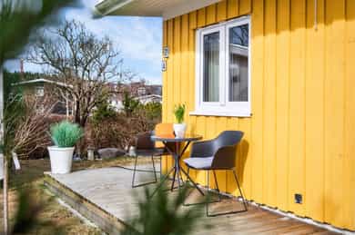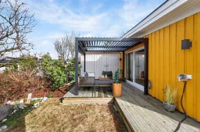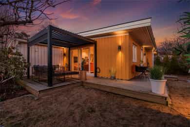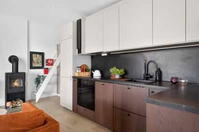 Unik hjørneleilighet med solfylt hage og terrasse på hele 27 kvm| Peis| Nytt bad, kjøkken, vinduer, tak & El-anlegg 2023