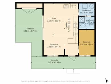 Boligen inneholder: Kjøkken, stue, bad/vaskerom, entré og soverom. I tillegg disponerer boligen en praktisk utvendig bod på totalt ca. 4 kvm.