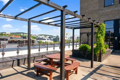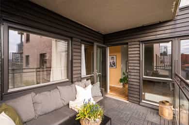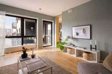 Lys og romslig 3-R med sydvestvendt balkong og god planløsning. Felles takterrasse. Sentral beliggenhet i et vekstområde