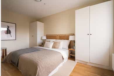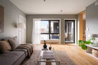 Stue: Lys og trivelig stue med store vindusflater og utgang til balkong, som gir rikelig med naturlig lys og flott utsikt. Rommet har gode møbleringsmuligheter med plass til en romslig sofaseksjon med tilhørende møblement, samt en spiseplass i tilknytning til kjøkkenet – perfekt for hyggelige sammenkomster. Balkong: Fra stuen er det direkte utgang til en herlig, sydvestvendt balkong på ca. 7,8 kvm med hyggelig utsikt. Balkongen har gode møbleringsmuligheter med plass til utemøbler, grill og beplantning, og fungerer som en naturlig forlengelse av boligen i sommerhalvåret. Det er montert både belysning og stikkontakt på vegg. Kjøkken: Separat kjøkken med lys og pen innredning fra Sigdal med glatte fronter. Laminat benkeplate med oppvaskkum og ettgreps svingbart blandebatteri. Kjøkkenet er utstyrt med keramisk koketopp og innebygget stekeovn, samt integrert kjøleskap/fryser og oppvaskmaskin. Det er ikke registrert utslag på fuktsøk foran benkeskap, og ingen synlige tegn til lekkasjer. Komfyrvakt er installert. Veggene ble malt i 2026. Bad: Stilrent baderom innredet med dusjnisje med innfellbare dusjdører og servant med ettgreps blandebatteri. Videre er det gulvstående toalett og opplegg for vaskemaskin. Badet har flislagt gulv med varmekabler, flislagte vegger og malt himling. Soverom: Leiligheten har to soverom av god størrelse. Hovedsoverommet har god plass til dobbeltseng og nattbord, og er utstyrt med to garderobeskap som gir gode oppbevaringsmuligheter. Soverom nummer to egner seg godt som gjesterom, barnerom eller hjemmekontor – etter behov. Entré: Innbydende entré med god plass til oppheng av yttertøy og annen oppbevaring. Det er også plass til skoskap, kommode eller annen møblering. Et garderobeskap medfølger og gir ekstra lagringsplass. Dørtelefon er praktisk plassert ved inngangsdøren. Tilstandsrapport for boligen er vedlagt salgsoppgaven. Se denne for nærmere informasjon om tilstandsgrad.