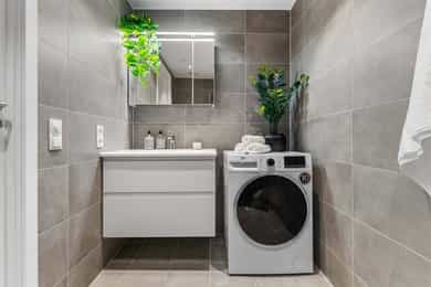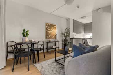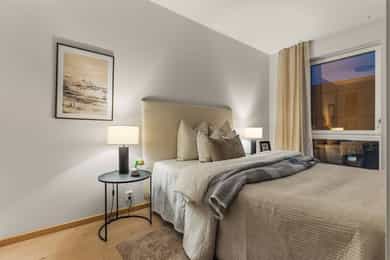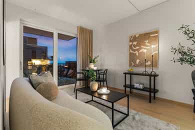 Moderne og stilren 2-roms leilighet fra 2023 med attraktiv og arealeffektiv planløsning. Boligen byr på lys stue med åpen kjøkkenløsning, delikat bad, romslig soverom og en herlig balkong som fungerer som en naturlig forlengelse av oppholdsrommet. Her får du en lettstelt og innflyttingsklar leilighet med tidsriktige materialvalg og gode kvaliteter – perfekt for førstegangskjøperen, pendleren eller som en smart investering. - Byggeår 2023 - Åpen stue- og kjøkkenløsning - Delikat, flislagt bad - Balkong med gode solforhold - Moderne standard og lite vedlikehold - Arealeffektiv planløsning - Mulighet for kjøp av garasjeplass - Kort vei til tog/buss