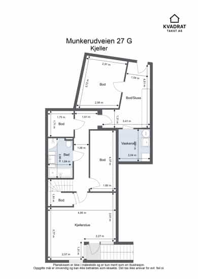 BRA-i: 76 kvm. Gang, bad, vaskerom, kjellerstue og boder.