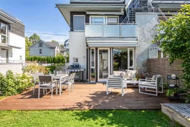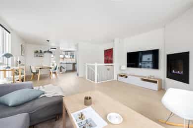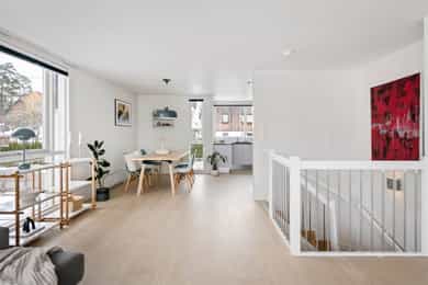 Velkommen til en halvpart vertikaldelt tomannsbolig fra 2008 med en svært attraktiv beliggenhet på et bilfritt og barnevennlig tun. Boligen går over tre etasjer og har en fantastisk takterrasse med meget gode solforhold og hyggelig utsyn. Tre flotte uteplasser med samlet areal på hele 87 kvm. - Flott hovedetasje med store vindusflater - Egen inngang til underetasje - Lyst og pent HTH kjøkken - Gasspeis i stue - To bad og stort vaskerom - Solrik takterrasse på 40 kvm - Familievennlig planløsning - Garasjeplass med lader - Inngang direkte til garasje - Godt med lagringsplass Boligen har en svært attraktiv beliggenhet i veletablert og idyllisk villaområde i hjertet av Nordstrand med kort vei til Sæter med alle nødvendige fasiliteter. Eiendommen sogner til populære Nordseter skole