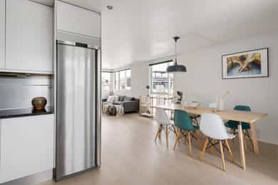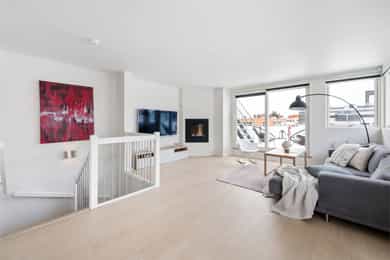 Stue med åpen kjøkkenløsning. Utgang fra stue til takterrasse med ett gulvareal på ca. 6,6 m² (TBA) med videre adkomst til den øverste takterrassen.