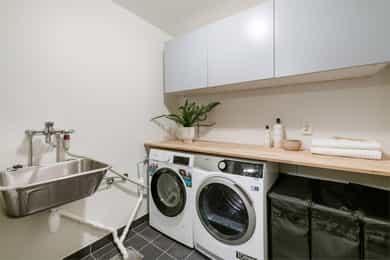 Garasjeplass med lader i felles garasjeanlegg. Egen inngang direkte til garasjekjelleren fra boligen.