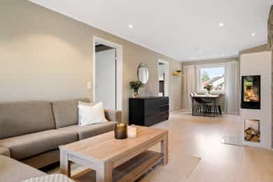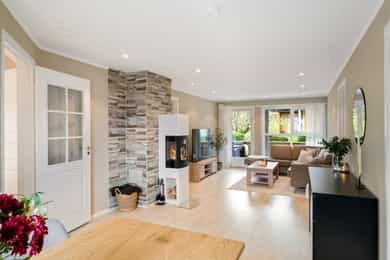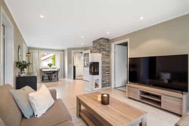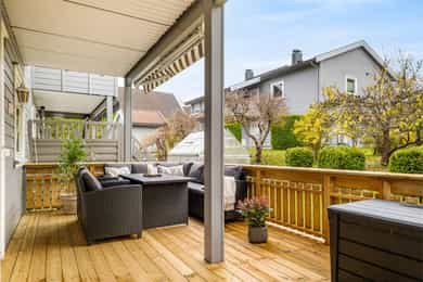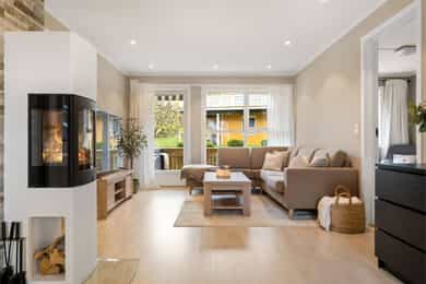 Lys og innbydende 3R m/vestvendt markterrasse 24 kvm - Peis - Kjøkken 2019 - Parkeringsplass m/elbillader - Vinduer 2024