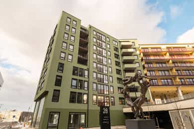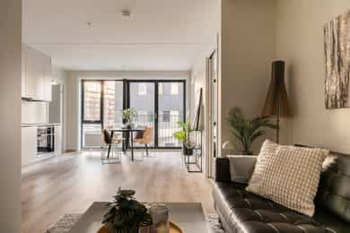 Velkommen til Standardveien 6! Ny og attraktiv 3-roms leilighet med sentral beliggenhet på Ulven. Boligen er en del av det moderne boligprosjektet Ulvenplassen, et område i sterk vekst og utvikling. Innflyttingen er nylig igangsatt, og leiligheten fremstår med gjennomgående høy standard. Her får du et moderne, komfortabelt og lettstelt hjem Kort fortalt - Funksjonell og godt utnyttet planløsning - Sosial og innbydende stue med åpen løsning mot kjøkkenet - Store vindusflater og fransk balkong - To gode soverom - IN-ordning på f.gjeld - Balansert ventilasjon - Vannbåren varme via radiator - 5 års garanti - Kjellerbod på 6m² - Flott, felles takterrasse, gjesteleilighet, kontor og selskapslokale - Kort vei til offentlig transport Ved nedbetaling av f.gjeld vil ny f.kostnad være kr. 3.110,-*