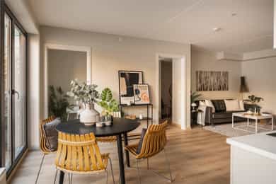 I samarbeid med Storebrand og HELP tilbyr Nordvik Boligkjøperpakke til våre boligkjøpere. Boligkjøperpakken er et gunstig forsikringskonsept som inneholder alle de forsikringene du trenger til den nye boligen din. Boligkjøperpakke Leilighet inneholder: Boligkjøperforsikring fra HELP, flytteforsikring og innboforsikring Super. Boligkjøperforsikring er en rettshjelpsforsikring som gir trygghet og profesjonell juridisk hjelp dersom det oppdages uventede feil eller mangler ved boligen. Forsikringen gjelder i 5 år fra overtakelsen. Flytteforsikring dekker skade på eiendeler under flytting ved plutselig og uforutsett hendelse som oppstår under transport eller i forbindelse med bæring mellom bolig, bil eller lagringssted. Forsikringen varer i 1 år fra budaksept. Innboforsikring Super dekker tingene dine ved blant annet tyveri, brann eller vannskader. Vår beste innboforsikring Super inkluderer blant annet uflaksforsikring, bistand ved ID-tyveri og psykologhjelp ved alvorlige hendelser hjemme. Forsikringen gjelder i 3 måneder fra overtakelsesdatoen av ny bolig. Velger du Boligkjøperpakke Leilighet+ får du i tillegg renteforsikring: Renteforsikringen kan hjelpe deg med rentekostnaden og forsikringspremien på din primærbolig som skal selges, hvis salgsprosessen fører til at du må betale rentekostnader på to lån. Forsikringen gjelder i 9 måneder (3 måneder karenstid) og dekker inntil 15 000 kroner i måneden. Boligkjøperforsikring fra HELP kan også kjøpes separat og inkluderer da flytteforsikring fra Storebrand. Boligkjøperpakke/Boligkjøperforsikring må tegnes senest ved kontraktsignering og gjelder fra overtakelsen. Kjøper blir kontaktet av Storebrand med et tilbud på videre forsikring av innbo. Se pris og mer informasjon om forsikringene i produktarket vedlagt salgsoppgaven, eller ta kontakt med megler.
