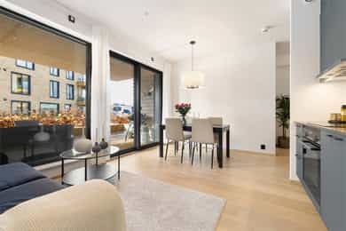 Velkommen til Bærumsveien 227 - presentert av Fridtjof Schmidt og Jan-Petter Solberg Hansen i Nordvik Bærum! Dette er en moderne og attraktiv leilighet fra 2024 med sentral beliggenhet nær både Bekkestua og Gjønnes stasjon. Boligen holder gjennomgående god standard med enstavs eikeparkett i oppholdsrom, stilrent kjøkken fra HTH og flislagt bad oppført etter TEK17. Planløsningen er praktisk og romslig med gode lysforhold og god takhøyde som gir en luftig romfølelse. Fra stuen er det utgang til en vestvendt terrasse på hele 26 m² med gode solforhold. Leiligheten har minimal bruksslitasje og fremstår i meget god stand. Det medfølger også garasjeplass. En moderne bolig med attraktiv beliggenhet, nær kollektivtransport, servicetilbud og flotte rekreasjonsområder. Velkommen til visning!