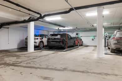 Boligen disponerer en fast parkeringsplass i parkeringskjeller med tilhørende elbillader. Parkeringsplassen er en del av et flåteparkeringssystem. Anlegget har tidligere hatt perioder med tekniske utfordringer, blant annet som følge av påkjørsler. Etter en lengre driftsstans ble systemet reparert og satt i drift igjen høsten 2025. Kostnader knyttet til denne reparasjonen beløper seg til ca. kr 10.000 per sameier. Denne kostnaden er allerede påløpt og vil ikke belastes kjøper av boligen. Sameiet har reklamert forholdet overfor utbygger, Skanska Bolig, og har i den forbindelse engasjert både teknisk rådgiver og advokat. Utbygger har så langt ikke akseptert reklamasjonen. Det kan derfor ikke utelukkes at det i fremtiden kan oppstå behov for ytterligere utbedringer og/eller tilknyttede kostnader.
