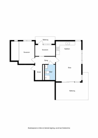 BRA-i: 71 kvm. Gang, garderobe, bad, stue, kjøkken, 2 soverom