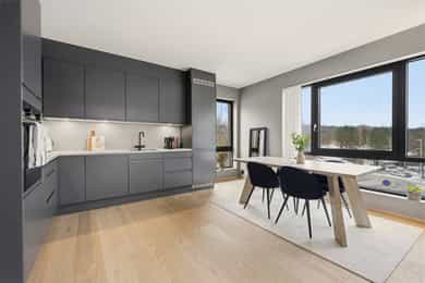 Moderne 3-roms leilighet fra 2024 - 2 balkonger - Garasje m/elbil-lader - Gasspeis - Vannbåren gulvvarme