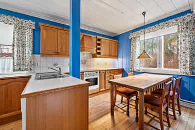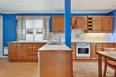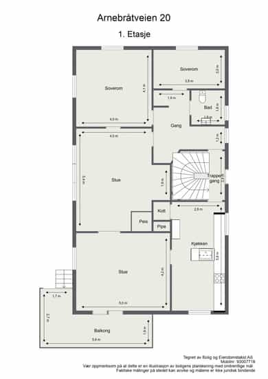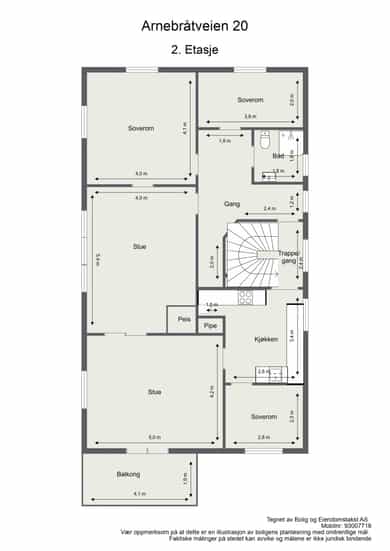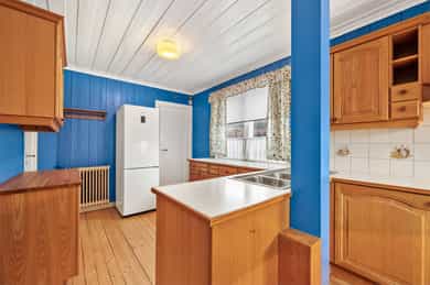 Boligen har generelt eldre standard, men innehar mye potensial. Dette er en hel tomannsbolig, idag innredet med kjøkken i både 1. og 2. etasje mm. Så her kan man f.eks kjøpe sammen med et vennepar, generasjonsbolig, for utvikling eller annet. Kjøkken: Boligen har 2 kjøkken, et i første etasje og et i andre etasje. Det er eldre kjøkkeninnredning i 1 etg. med profilerte eikefronter, benkeplate og ventilator. Kjøkkenet er utstyrt med oppvaskkum. Det er gode oppbevaringsmuligheter i skuffer og skap. Ventilator med avtrekk ut. Originalt kjøkken i 2 etg. med malte fronter og ventilator. Kjøkken med oppvaskkum. Eldre ventilator med avtrekk ut. Stue: Boligen har 2 store stuer i 2.etasje. Det er her mulighet for å innrede med sofagruppe, medie møblement og salongbord. Det er god plass til å etablere en hyggelig spisegruppe i rommet, eller å bruke den ene stuen til spisestue. Fra stuen er det adkomst til en sydvestvendt terrasse på ca 8 kvm, det er mulig å innrede balkongen med utemøbler og grill. Stuene i 2 etasje har romslig størrelse, og det er plass til sofagruppe, medie møblement og salongbord. Det er adkomst til kjøkken fra rommet. Soverom: Boligen har totalt 5 soverom i god størrelse. Det er to soverom i 1.etasje, og 3 soverom i 2.etasje. Det er store vindusflater som slipper inn rikelig med lys og gjør rommene behagelig og romslige. Rommene har god plass til seng og tilhørende møblement, samtidig som det oppleves luftig og ryddig. Det er mulig å etablerte garderobeløsninger til klær og sko. Bad: Eldre baderom med wc, servant med skap til oppbevaring, opplegg til vaskemaskin og røropplegg til dusj. Det er varmekabler i gulv og malt innredning i rommet. Det er eldre våtromskontruksjon, røropplegg, sluk m.m. Rommet er i bruk. Eldre baderom i 2.etasje med wc, servant og dusjkabinett. Det er varmekabler i gulv og malt innredning i rommet. Det er eldre våtromskontruksjon, røropplegg og sluk. Det er noe nyere utstyr, sluk og gulvfliser i rommet. Kjelleretasje: Boligen har en kjelleretasje på totalt 99kvm. Det er i dag totalt syv boder som kan benyttes til oppbevaring. Kjelleren har eget fyrrom. Vaskerom: Boligen har et praktisk vaskerom fra byggeår. Vaskekjeller med utslagskar, bereder og opplegg til vaskemaskin. Det er eldre våtromskonstruksjon, røropplegg, sluk m.m. Hulltaking er ikke foretatt, da det er murvegger i rommet.