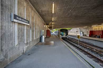 Makrellbekken eller Holmen Røa T-bane For mer informasjon om avganger, se: https://ruter.no/