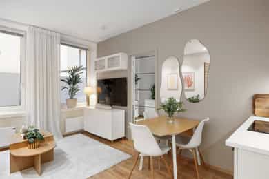 • Lys stue, åpen kjøkkenløsning