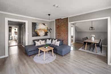 Træleborg - Lys og innbydende ½-part | Stilfullt oppgradert | Garasjeplass | Solrik balkong | Sentralt og attraktivt!