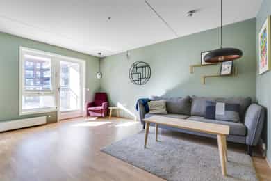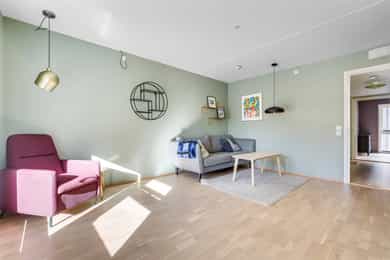 Velkommen til Midtveien 53! Presentert av Anders Andersen ved Nordvik Lys og moderne 3-roms leilighet fra 2019 med en attraktiv og funksjonell planløsning. Boligen holder en gjennomgående god standard og byr på rikelig med naturlig lys. Leiligheten har to balkonger som gir gode uteplasser og fine muligheter for å nyte solen gjennom dagen. Her bor du i et attraktivt og nyere boligområde med kort vei til kollektivtransport, dagligvarebutikker, servicetilbud og hyggelige grøntområder – perfekt for en praktisk og komfortabel hverdag. Verdt å merke seg: -IN-ordning -TG 1 på alt -Felleskostnadene inkluderer A-konto oppvarming. -Parkeringsplass -En kjellerbod -To balkonger -Heis -Felles takterrasse Ved innfrielse av fellesgjeld vil ny felleskostnad være: 4551,- pr. mnd.