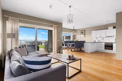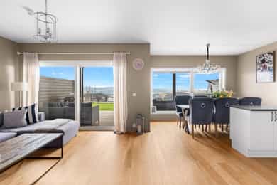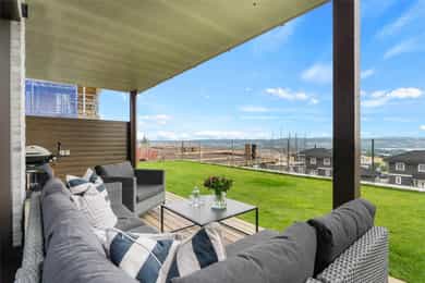 Nyere og moderne 3-roms endeleilighet - Garasje m/lader - Stor solrik markterrasse - Byggeår 2022 - Markanært