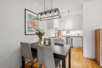 Velkommen til Waldemar Thranes gate 72 – attraktiv beliggenhet i et svært populært område rett ved Alexander Kiellands plass. Området har de siste årene opplevd sterk utvikling, mye takket være sin sentrale beliggenhet med enkel gangavstand til sentrum. Her bor man i et levende og urbant knutepunkt som naturlig binder sammen Grünerløkka, St. Hanshaugen og Sagene/Torshov. Nærområdet byr på et rikt utvalg av kafeer, restauranter, butikker og servicetilbud, kombinert med gode kollektivforbindelser og grønne rekreasjonsområder – alt innen kort avstand, med det beste Oslo har å by på. Aktivitet og fritid: Området byr på gode tur- og rekreasjonsmuligheter. Turstiene langs Akerselva gir enkel tilgang til både rolige spaserturer og lengre turer. Det er også kort avstand til St. Hanshaugen og Grünerløkka, som byr på grønne parker, hyggelige møteplasser og et pulserende byliv. Iladalen park, som ligger rett ved leiligheten, er et naturlig samlingspunkt for grilling og sosiale aktiviteter på sommerstid. Iladalen aktivitetspark byr på et moderne aktivitetsanlegg med tilbud for alle aldre, inkludert sykkeløvingsbane, trimapparater, klatrenett, lekeapparater, trampoliner, bordtennisbord og kunstgressbane. I nærområdet finnes det også flere treningssentre, blant annet SATS Ila, SATS Ringnes Park, SATS Sagene og Myhrens Sportssenter på Torshov, i tillegg til Vulkan flerbrukshall med blant annet klatrehall, squashhall og Vulkan Athletica. Servicetilbud: Hverdagen oppleves som svært praktisk med butikk- og næringslokaler i underetasjen av bygget. Leiligheten ligger i nabolagssenteret Kiellands Hus, som dekker det meste av hverdagsbehov med blant annet dagligvarebutikker, kafé, sushi, Vinmonopol, post i butikk, apotek og bokhandel – alt i samme bygg. Det finnes også flere søndagsåpne dagligvarebutikker i nærområdet, blant annet Matkroken rett rundt hjørnet. Mot vest fra leiligheten er det gangavstand til St. Hanshaugen med spennende forretninger og hyggelige parker, mens man mot øst finner Grünerløkka med sitt brede utvalg av kafeer, restauranter og butikker. Det er også kort vei til Vulkan-området med populære Mathallen og Smelteverket, samt gangavstand til Ringnes Park og Ringen kino. Offentlig kommunikasjon: Boligen har svært gode kollektivforbindelser, med bussforbindelser i alle retninger kun ca. ett minutts gange fra leiligheten. Alexander Kiellands plass ligger rett utenfor døren og fungerer som et sentralt kollektivknutepunkt med bussforbindelser i flere retninger. Det er i tillegg kun noen minutters gange til trikk mot sentrum. Her går blant annet busslinje 21 (Tjuvholmen/Helsfyr), linje 34 (Tåsen/Ekeberg Hageby) og linje 54 (Kjelsås/Kværnerbyen), samt gangavstand til trikkelinjene 12, 15 og 18. Fra Oslo S tar det ca. 20 minutter med tog til Oslo Lufthavn Gardermoen, med hyppige avganger. Skoler og barnehager: Boligen sokner til Sagene barne- og ungdomsskole, som ligger kun ca. 0,5 km fra boligen og tilbyr undervisning fra 1. til 10. trinn. I nærområdet finner du også flere videregående skoler, blant annet Foss videregående skole og Oslo katedralskole. Det er et bredt utvalg av barnehager i området, med blant annet gangavstand til Waldermars, Vøyensvingen og Akersbakken barnehage.
