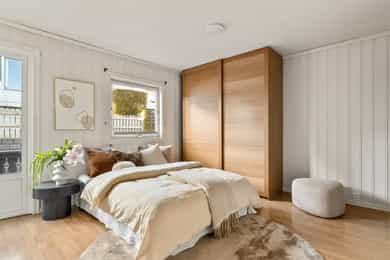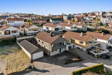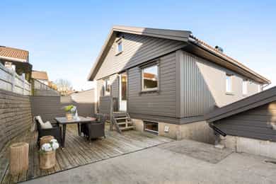 Enebolig med attraktiv beliggenhet i et populært og barnevennlig område, med flott sjøutsikt mot innseilingen til Stavanger. Boligen grenser til lekeplass. Kort avstand til skoler, barnehager, idrettsanlegg, dagligvarebutikk, Tastasenteret og gode bussforbindelser. Boligen har en romslig og luftig stue med god takhøyde og store vindusflater som gir rikelig med naturlig lys og flott utsyn. Adskilt og funksjonelt kjøkken. 2. etasje finner du to soverom. Hovedsoverommet har direkte adkomst til privat bad samt utgang til en skjermet terrasse. 1. etasje er innredet og benyttet til utleie, uten søkt bruksendring, og inneholder stue med kjøkkenløsning, to soverom, bad og vaskerom. Deler av etasjen har vært utleid for kr 12 500 per måned. Stor garasje med plass til bil og ekstra lagring.