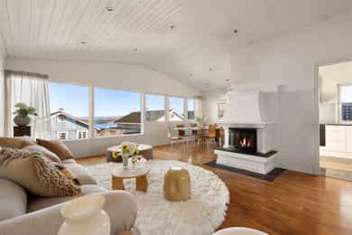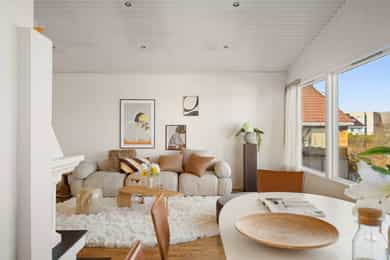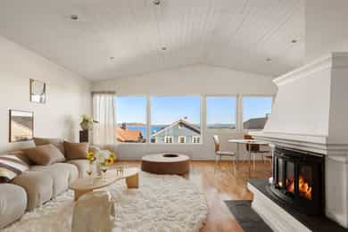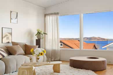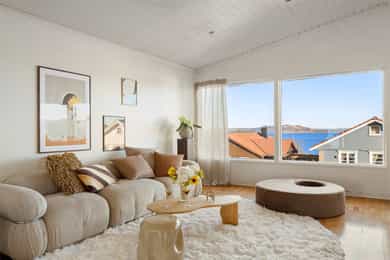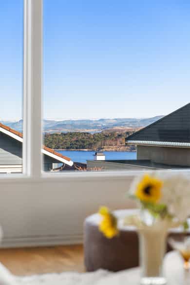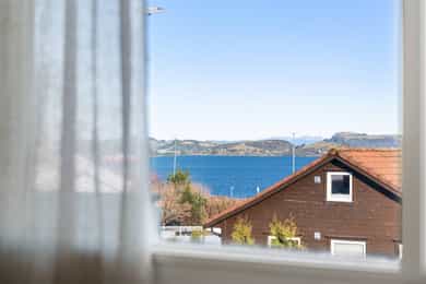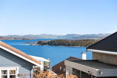 Enebolig med flott sjøutsikt, garasje og barnevennlig beliggenhet mot friområde