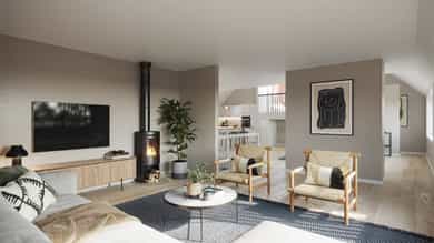 Ferdigstilt 2. kvartal 2026 - 4 arkitekttegnede familieboliger med moderne arkitektur og optimale solforhold i blindvei