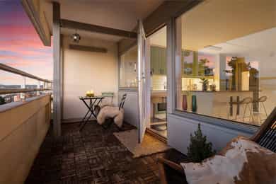 Lys og solrik 2-roms med stor vestvendt balkong| Soverom & alkove| Spektakulær utsikt |Markanær & sentralt |Ingen innsyn