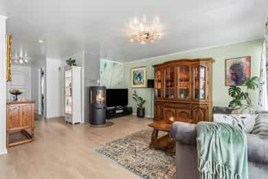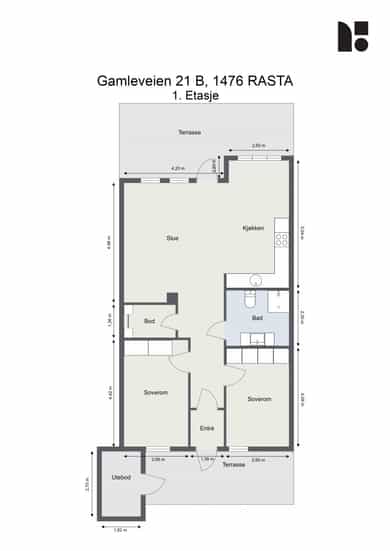 Magnar Steen v/Nordvik eiendomsmegling ønsker velkommen til Gamleveien 21B, en attraktiv 3-roms leilighet i et sentralt og attraktivt område på populære Rasta i Lørenskog. Her bor du i umiddelbar nærhet til servicetilbud, offentlig transport og flotte turområder. Leiligheten har en god planløsning bestående av entré, stue med åpen kjøkkenløsning, bad og to soverom. Utgang fra stue til vestvendt terrasse på 28 m², og foran boligen er det adkomstterrasse på 15 m². Verdt å merke seg: - Gjennomgående leilighet i 1. etasje - Parkeringsplass på sameiets tomt - Vinduer byttet i regi av sameiet i 2016 - Lyst og luftig med moderne overflater - Åpen stue-/kjøkkenløsning med peis - To fine soverom med garderobeskap - Innvendig bod og utebod (4 m²) Velkommen!