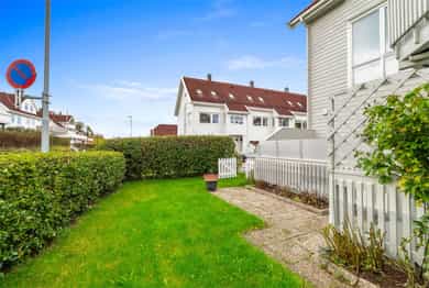 Velholdt enderekkehus med attraktiv beliggenhet. Flotte uteområder. Integrert garasje med el. Barnevennlig nabolag.