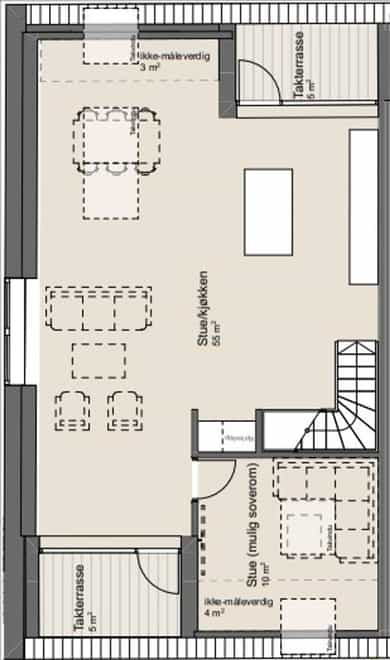 Unik mulighet i Køhlerlåven – Prosjektets største bolig | 2 plan | 2 takterrasser | 4,5 m takhøyde | IN ordning