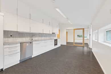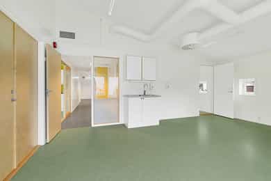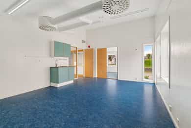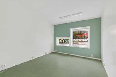 Frittliggende Barnehage bygg over ett plan og teknisk rom på loft. 5 Baserom, garderobe, bad, garderober, wc, gang, personalrom, kontor, kjøkken og , vaskerom, 2 kjølerom, fryserom, lager, teknisk-rom og lager.