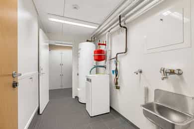 Strøm. Vann bårende varme som er i gulv. Vann bårende varme er termostatstyrt på rommene. Balansert ventilasjonsanlegg. Ventilasjonsanlegg med forvarming av luft.