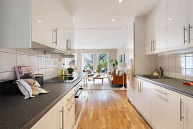 Velkommen til en nyere, flott familiebolig i enden av rekke. Huset ble ferdigstilt i 2014 og holder en moderne standard. Boligen er romslig med gjennomgående planløsning over to etasjer. De store vindusflatene slipper inn mye lys, og med den gode takhøyden gir dette boligen en unik og behagelig atmosfære. Bilen parkeres trygt på medfølgende garasjeplass og området fremstår som ideelt for barnefamilier med barnehager og skoler i nærområdet. - Praktisk familiebolig over to etasjer - Egne uteområder på 3 sider av huset - Gjennomgående planløsning - 24 m² sydvendt terrasse - Lys og åpen stue-/kjøkkenløsning - Vedovn i stuen - 4 gode soverom og to flotte bad - Garasjeplass m/ lader - 2 innvendige boder - Tilbaketrukket og barnevennlig - 2 min gange til Grorud T-bane og senter