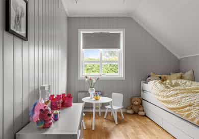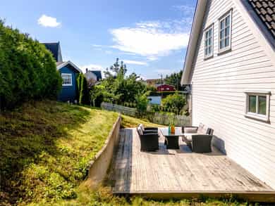 Romslig familiebolig på 230 kvm med solcelleanlegg, 5 soverom, 3 bad, flere solrike uteplasser og mekkegarasje.