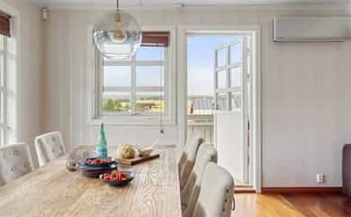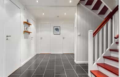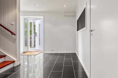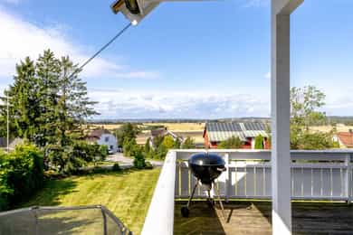 På idylliske Søndre Årum, midt mellom Fredrikstad og Sarpsborg, finner du Vardeveien 36 – en stor og familievennlig enebolig over tre etasjer. Med hele 230 kvm bruksareal får du rikelig med plass til både hverdag og livsutfoldelse. Boligen rommer fem soverom, tre bad – ett i hver etasje – og et eget rom som brukes som hjemmekino. Her er det lett å trives! Solide materialvalg, vannbåren gulvvarme og solcelleanlegg fra 2020 gir både komfort og lavere driftskostnader. Den flislagte garasjen i underetasjen byr på ypperlige muligheter for mekking, lagring eller hobbyprosjekter. Ute venter flere uteplasser med gode solforhold og fin utsikt mot det åpne jordbrukslandskapet. Beliggenheten gir en god kombinasjon av landlig ro og sentral nærhet til det du trenger i hverdagen.