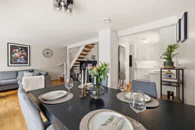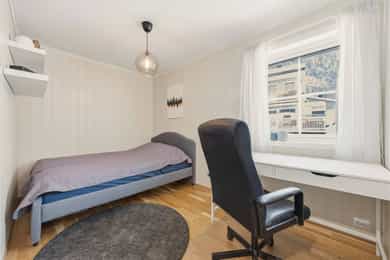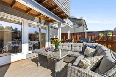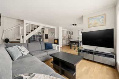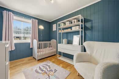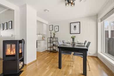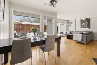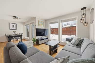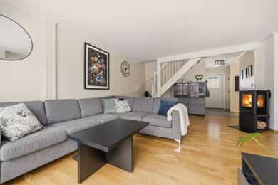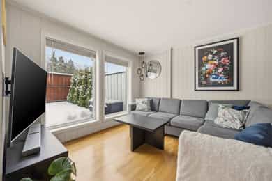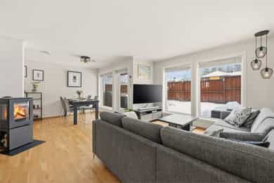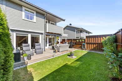 Flott halvpart av tomannsbolig fra 2014 med usjenert hage og terrasse - 2 stuer og 3 soverom - Garasje - Familievennlig!