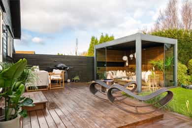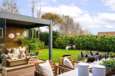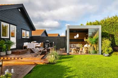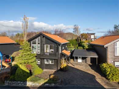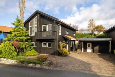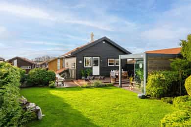 Attraktiv og velholdt enebolig på solrik tomt med innbydende uteplasser og flott opparbeidet gårdsrom med carport.