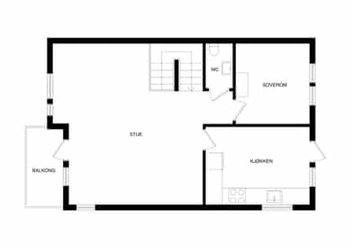 BRA-i: 61 kvm. Stue, kjøkken, toalettrom, soverom.