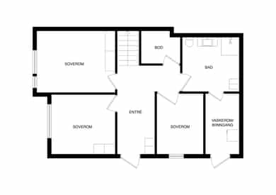 1. Etasje: Entré/gang, 3 soverom, 3 boder, vaskerom 2. Etasje: Stue, kjøkken, toalettrom, soverom, terrasse og hagestue