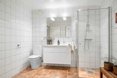 Det er i forbindelse med salget utarbeidet en tilstandsrapport fra bygningssakkyndig. Tilstandsrapporten er en teknisk gjennomgang av boligen med oppdagede avvik. Vedlagt salgsoppgaven følger tilstandsrapporten og selgers egenerklæring. Disse må leses nøye av interessenter før bud inngis. Opplysninger gitt i tilstandsrapporten anses å være kjent for kjøper, og det kan derfor ikke reklameres på forhold som fremkommer av tilstandsrapporten. Forhold som har fått TG2 og TG3 må gjennomgås spesielt nøye, da disse indikerer avvik fra normal slitasje og/eller høy alder, med mulig behov for utbedring. Bygningsdeler som har fått TGIU er ikke undersøkt av takstmann. Beskrivelsen av boligen som følger er hentet fra tilstandsrapporten: Taktekkingen er av betongtakstein. Taket er besiktiget fra bakkenivå. Plastrenner og nedløp. Yttervegger med stenderverk. Liggende kledning fra byggeåret. Takkonstruksjonen har sperrekonstruksjon. Grunnet manglende gulv er loftet besiktiget fra loftsluken. Det deler av loftet som ikke er kontrollert. Bygningen har malte trevinduer med 2-lags glass. Vinduer blir kontrollert visuelt og med stikktagninger. Med stikktagninger menes kontroll av noen utvalgt vinduer der stikktagninger utføres på deler av treverk, samt funksjon. Dette vil bety at det kan være vinduer eller deler av vinduer som har skjulte skader uten at dette blir registrert. Vinduer som ikke er tilgjengelige fra bakkenivå vil ha redusert mulighet for kontroll. Bygningen har malt hovedytterdør. Platting og veranda i tre konstruksjon. Trapper i mur/betong. Bygningsdeler som har fått TG2: - Nedløp og beslag: Vurdering av avvik: • Det mangler snøfangere på hele eller deler av taket, men det var ikke krav om dette på byggemeldingstidspunktet. Konsekvens/tiltak • Det er ikke krav om utbedring av snøfangere opp til dagens krav. - Veggkonstruksjon: Vurdering av avvik: • Bordkledning går stedvis nesten helt ned i terreng. Det mangler musebånd på hushjørner. Konsekvens/tiltak • Lokal utbedring bør foretas for å øke avstanden mellom terreng og bordkledning - Dører - 2/ biinngangsdør og terrassedører: Vurdering av avvik: • Det er avvik: Dørene har fuktmerker/esinger i nedre del av dørblad. Konsekvens/tiltak • Tiltak: Det bør iverksettes tiltak for å utbedre fuktmerker og svelling i nedre del av dørbladene, for å forhindre ytterligere skade og redusert levetid på dørene. Dersom tiltak ikke utføres, kan det føre til forringelse av dørens funksjon og økt risiko for fuktskader i tilstøtende konstruksjoner. - Balkonger, terrasser og rom under balkonger: Vurdering av avvik: • Det er avvik: Søyler under terrasse står helt ned mot, og delvis under terreng. På sikt vil dette kunne føre til fukt/råteskader i treverket. Det anbefales at tresøyler monteres i søylesko over terreng. Det anbefales at minimum hver andre bjelke festes med beslag. Konsekvens/tiltak • Tiltak: Tresøyler bør monteres i søylesko over terreng for å hindre fukt- og råteskader i treverket. Det bør også monteres beslag på minimum hver andre bjelke for å sikre tilstrekkelig stabilitet og redusere risikoen for konstruksjonssvikt. - Innvendige overflater: Vurdering av avvik: • Det er avvik: Gulvoverflater har stedvis litt slitasje, bl.a på kjøkkengulv. Konsekvens/tiltak • Tiltak: Ingen umiddelbare tiltak, evt sliping av parkett. - Rom Under Terreng: Vurdering av avvik: • Det er avvik: På oppføringstidspunktet ble utforede vegger mot grunnmur bygget med plast/dampsperre. Dette har i ettertid vist seg å være uheldig med tanke på kondens/fukt, og er ikke lenger en anbefalt utførelse/oppbygning. Det gjøres oppmerksom på at alle yttervegger mot terreng er noe mer utsatt for fuktinnsig og påfølgende skader/biologisk aktivitet. Jevnlig kontroll av kjellerens vegger mot terreng samt kontroll(oppspyling) av drens anbefales. Konsekvens/tiltak • Tiltak: Det anbefales jevnlig kontroll av kjellervegger mot terreng samt oppspyling og vedlikehold av drenering for å redusere risikoen for fuktinnsig og påfølgende skader eller biologisk aktivitet. Konstruksjonen har økt risiko for fuktskader grunnet bruk av plast/dampsperre mot grunnmur, noe som kan føre til skjulte skader over tid. - UNDERETASJE > BAD/ Overflater vegger og himling: Vurdering av avvik: • Det er påvist at flisfuger har riss/sprekker. Konsekvens/tiltak • Andre tiltak: Jevnlig kontroll for å sjekke evt utvikling. Om riss/sprekker utvikler seg bør det foretas nærmere kontroll. - UNDERETASJE > BAD/ Sluk, membran og tettesjikt: Vurdering av avvik: • Mer enn halvparten av forventet brukstid er passert på membranløsningen. Konsekvens/tiltak • Det er viktig å merke seg at levetiden til en membran varierer basert på kvalitet, installasjon og bruk. Eldre membraner kan bli sprø og sprekke opp, noe som fører til at de mister sin vanntettende funksjon. Dette kan resultere i vannlekkasjer gjennom vegger og gulv og fuktskader. - UNDERETASJE > VASKEROM/ Overflater Gulv: Vurdering av avvik: • Det er påvist at høydeforskjell fra topp slukrist til gulv/synlig topp membran ved dørterskel er mindre enn 25 mm. • Det er påvist avvik i fallforhold til sluk i forhold til krav i forskrift på byggetidspunktet. Konsekvens/tiltak • Til tross for avviket i fall/høydeforskjell til sluk, vil gulvet fortsatt kunne lede vann mot sluket, men med redusert effektivitet. Dette kan potensielt øke risikoen for vannansamling i enkelte områder av badet. - UNDERETASJE > VASKEROM/ Sluk, membran og tettesjikt: Vurdering av avvik: • Mer enn halvparten av forventet brukstid er passert på membranløsningen. Konsekvens/tiltak • Det er viktig å merke seg at levetiden til en membran varierer basert på kvalitet, installasjon og bruk. Eldre membraner kan bli sprø og sprekke opp, noe som fører til at de mister sin vanntettende funksjon. Dette kan resultere i vannlekkasjer gjennom vegger og gulv og fuktskader Bygningsdele