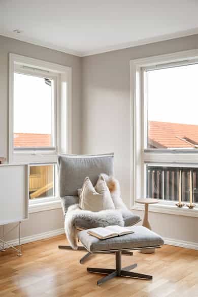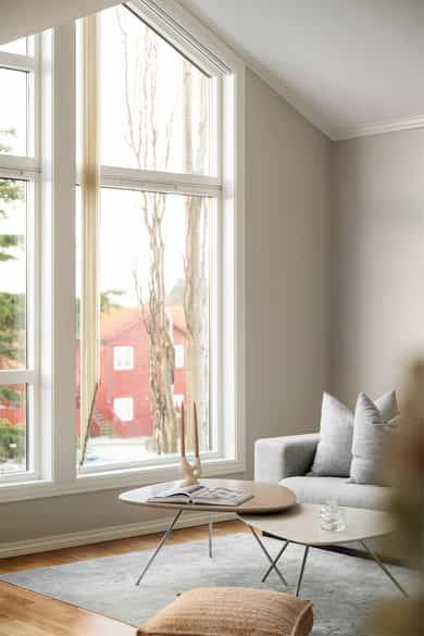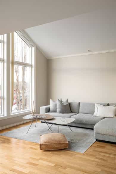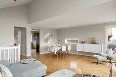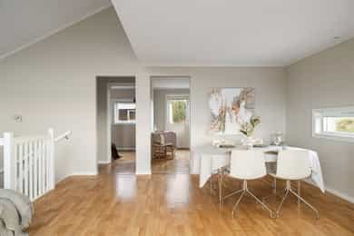 Åpen og lys stue med gode møbleringsmuligheter